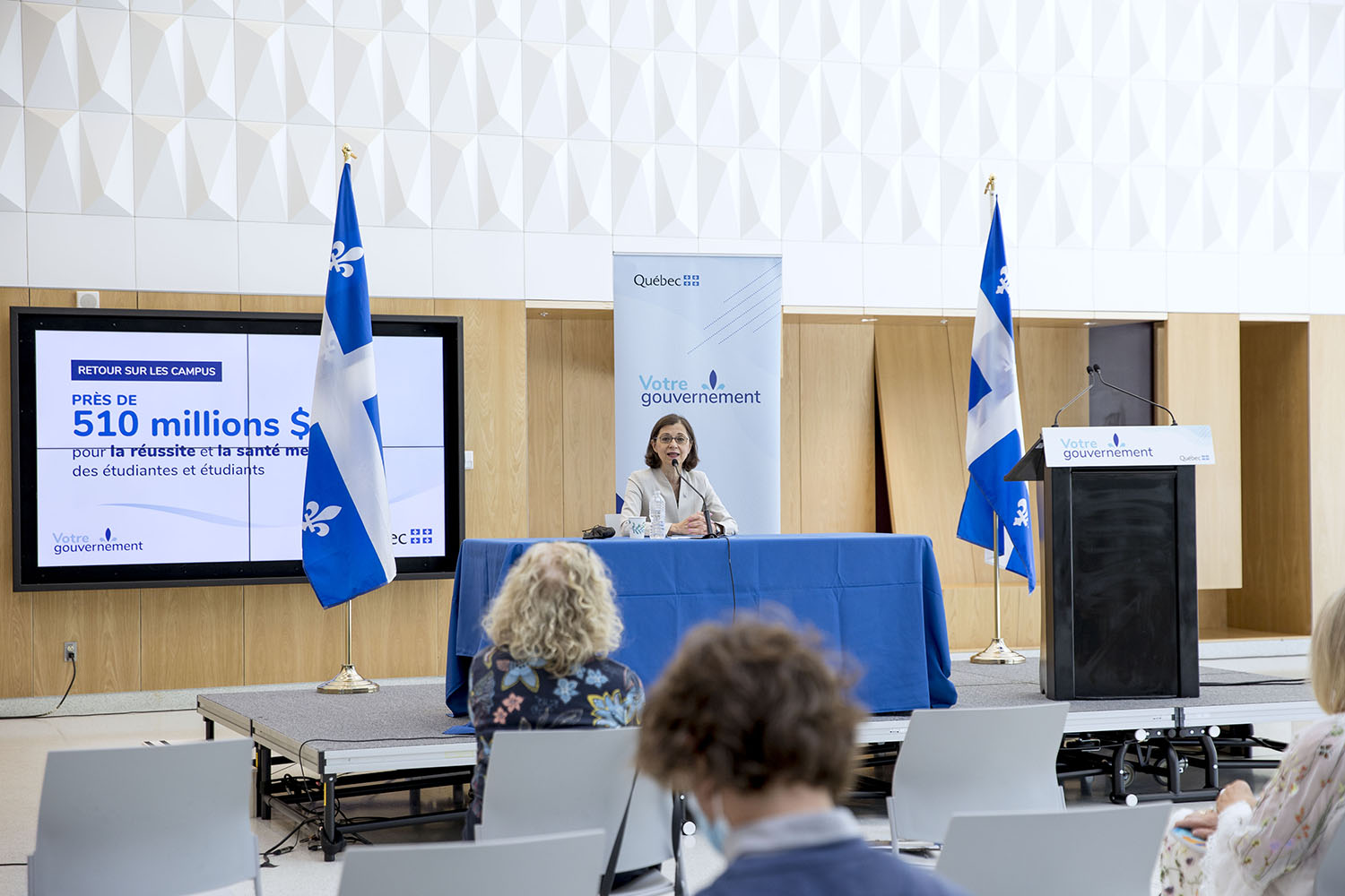 La ministre de l’Enseignement supérieur du Québec, Danielle McCann, était de passage au campus MIL de l’Université de Montréal aujourd’hui pour annoncer un investissement majeur de son gouvernement destiné à favoriser la santé mentale et la réussite scolaire de la communauté étudiante universitaire québécoise.