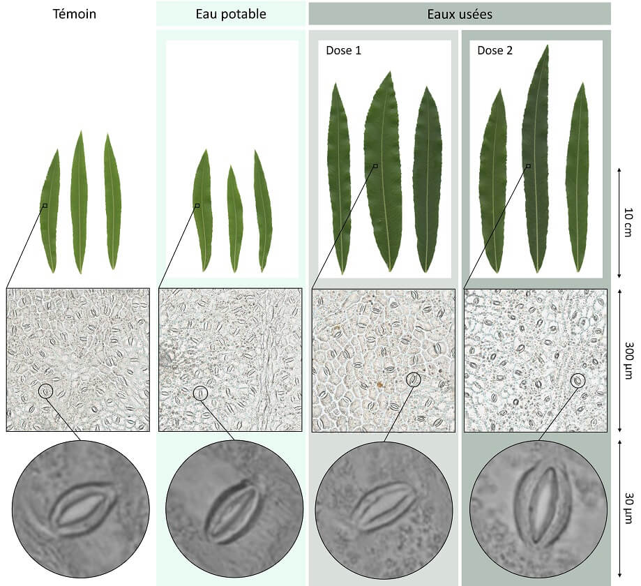 D’une part, il a constaté des augmentations atteignant 142% de la surface des feuilles et de 15% de la taille des stomates – les petits orifices en bas des feuilles qui leur permettent d’échanger des gaz avec l’atmosphère – chez les saules fertigués, comparativement aux autres.